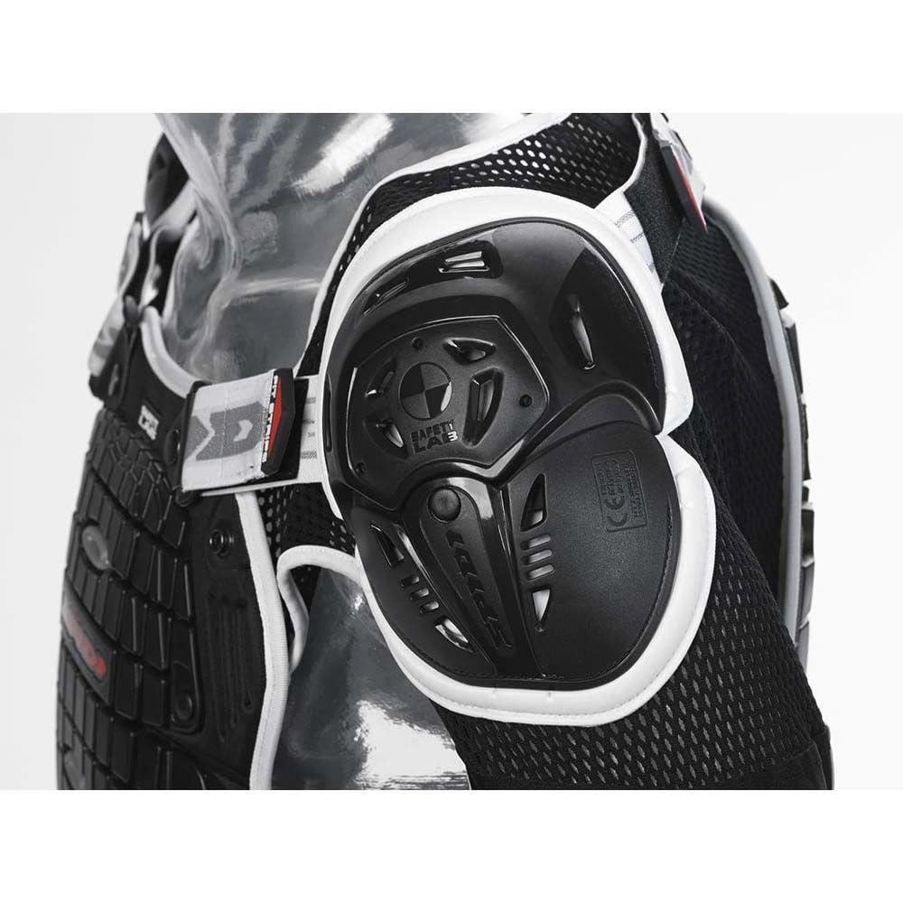Áo tích hợp đầy đủ giáp tại lưng, ngực, vai, khuỷu tay và hai bên sườn, bảo vệ toàn diện các điểm va đập quan trọng: